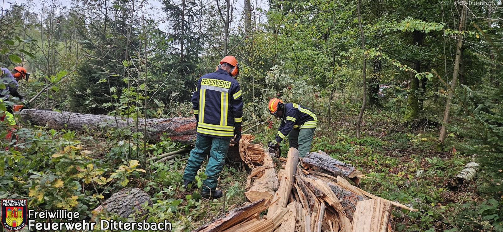 Dabei wurden auch gefallene Bäume mit Wurzelteller aufgearbeitet und aufliegende Stämme mittels Mehrzweckzug fachgerecht niedergelegt.