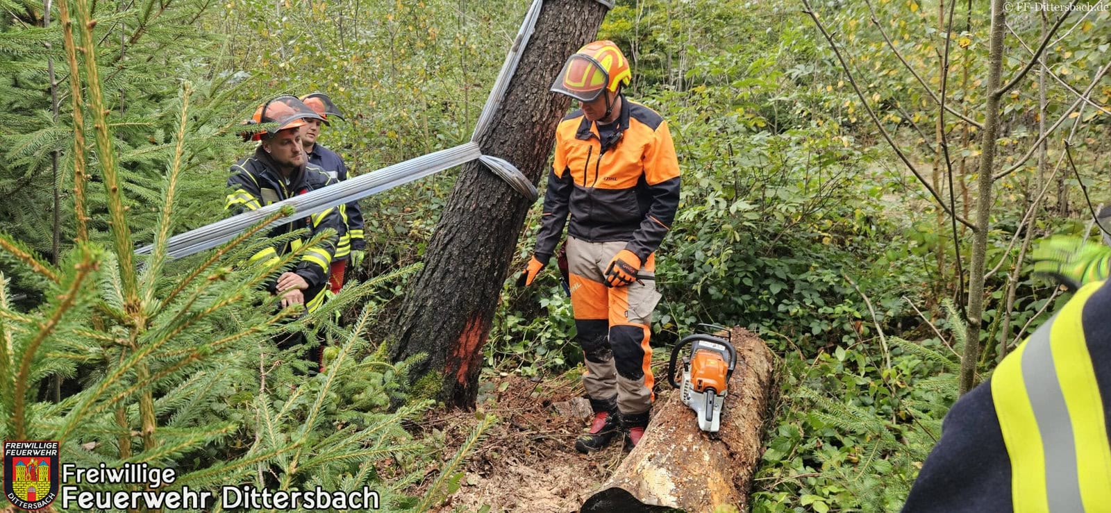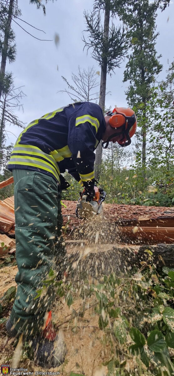 Dabei wurden auch gefallene Bäume mit Wurzelteller aufgearbeitet und aufliegende Stämme mittels Mehrzweckzug fachgerecht niedergelegt.