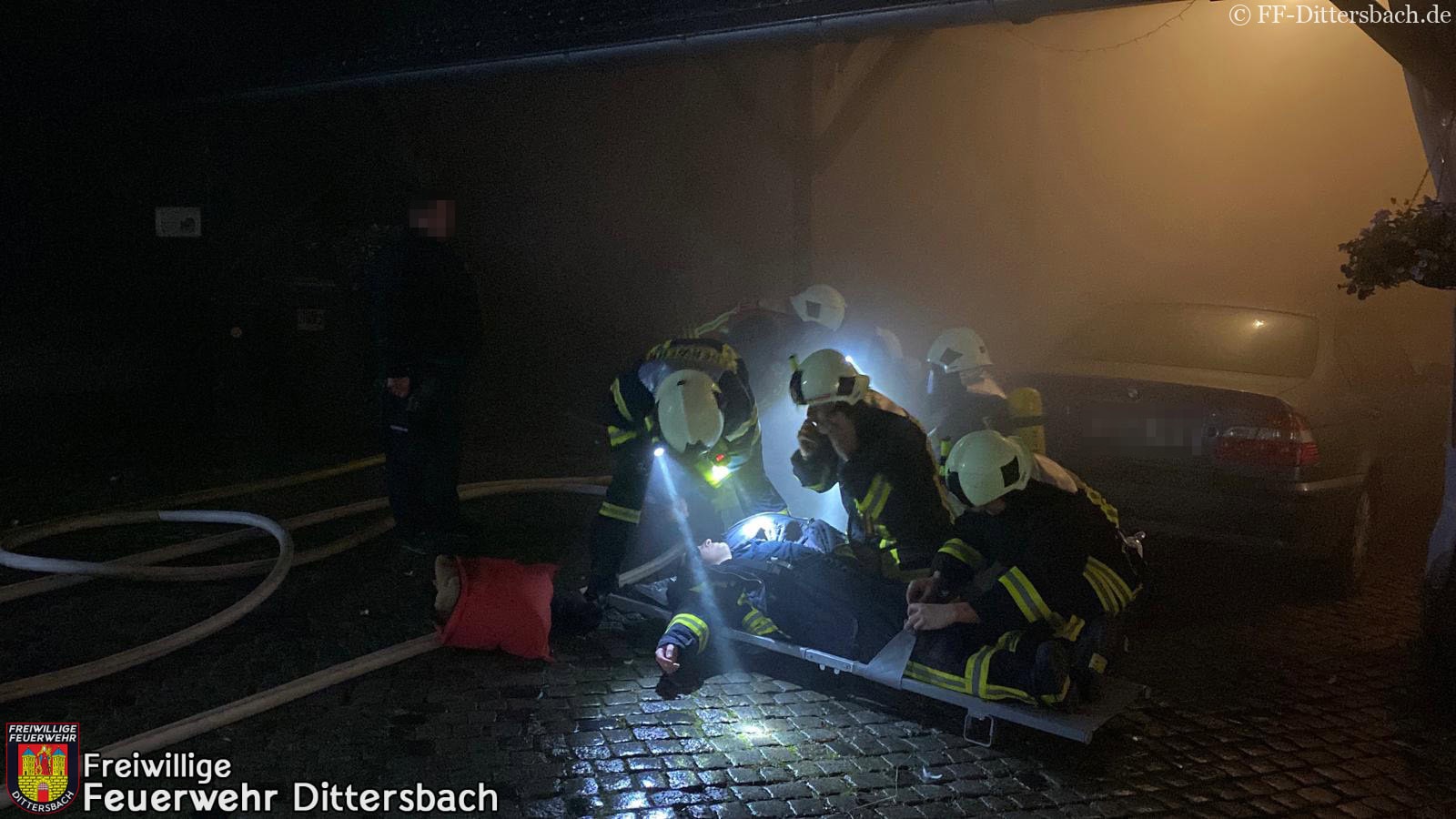 Der Angriffstrupp ging unter Atemschutz in das GebÀude vor. Vorrang hatte die Menschenrettung, da die Meldung lautete, dass sich noch zwei Personen im GebÀude befinden sollten.