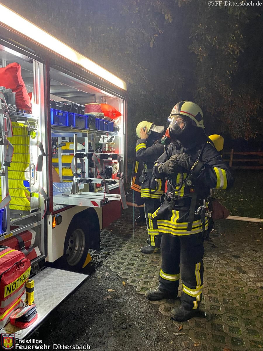 Danach ging es zurĂŒck ins GerĂ€tehaus, um die SchlĂ€uche auszutauschen, die AtemschutzgerĂ€te zu wechseln und die Einsatzfahrzeuge wieder vollstĂ€ndig einsatzbereit zu machen.