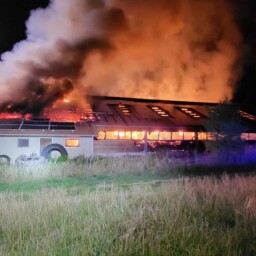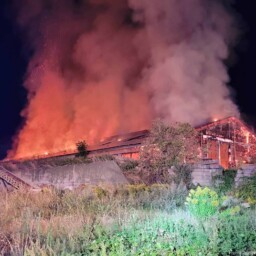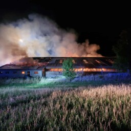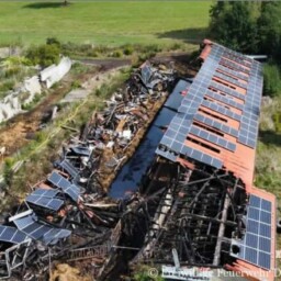 Die mit Photovoltaik vollbelegte Dachfläche erschwerte zusätzlich die Brandbekämpfung. Im Einsatzverlauf wurde das THW mit einem Teleskoplader hinzualamiert um das in der Scheune befindliche Stroh herauszuholen.