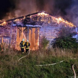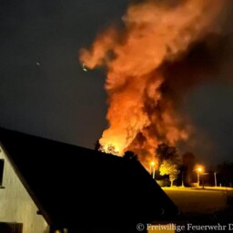 In den frühen Morgenstunden wurde beschlossen, die Scheune gänzlich einzureißen, da die Gefahr eines Einsturzes zu groß war. Somit musste erneut auf das THW zurückgegriffen werden. Diese verbrachten einen zusätzlichen Bagger an die Einsatzstelle.