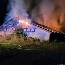 Um 21.49 wurde Vollalarm für alle Frankenberger Kräfte ausgelöst. Bereits auf Anfahrt nach Mühlbach war die volle Ausdehnung sichtbar. Die im Vollbrand stehende Scheune war vollflächig in Brand geraten.