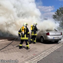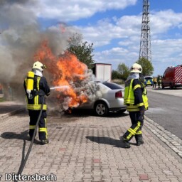Zusammen mit dem Angriffstrupp des Tanklöschfahrzeugs aus Frankenberg konnte der Fahrzeugbrand von zwei Seiten schnell unter Kontrolle gebracht werden.
