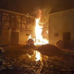 Gemeldet wurde ein Großbrand Scheune – Kühe im Gebäude.