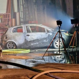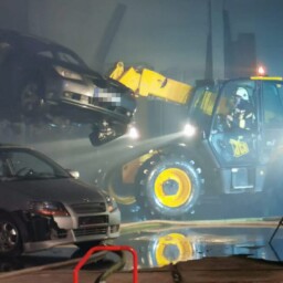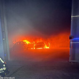 In einer Lagerhalle kam es zu einem Brand mehrerer Fahrzeuge, die bei unserem Eintreffen schon im Vollbrand standen.